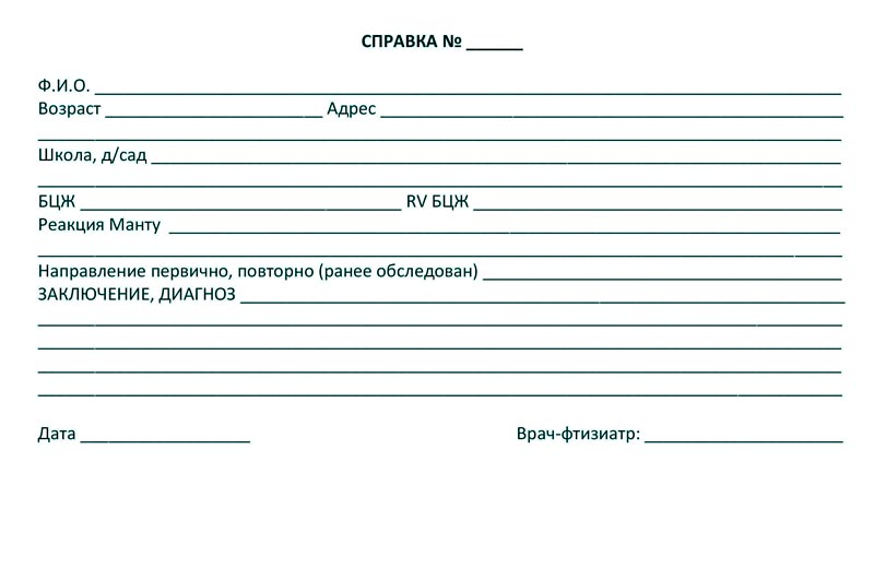 Результаты исследования при получении справки Манту от фтизиатра